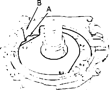 3. Install the breaker plate into the distributor housing. Position the breaker plate so that projection (A) of the breaker plate fits into the groove (B) of the distributor housing. Install the breaker plate screws.