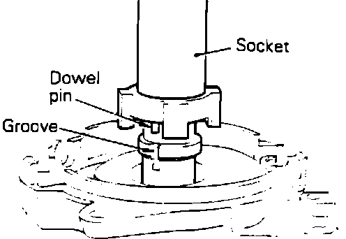 4. Install the signal rotor onto the rotor shaft. Position the signal rotor so that the dowel pin will fit into the alignment line. Using a deep socket lightly tap the signal rotor into position.