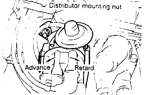 4. Loosen distributor mounting nut just enough so the distributor housing can rotate in its mounting. Turn the distributor housing until specified value is reached.
