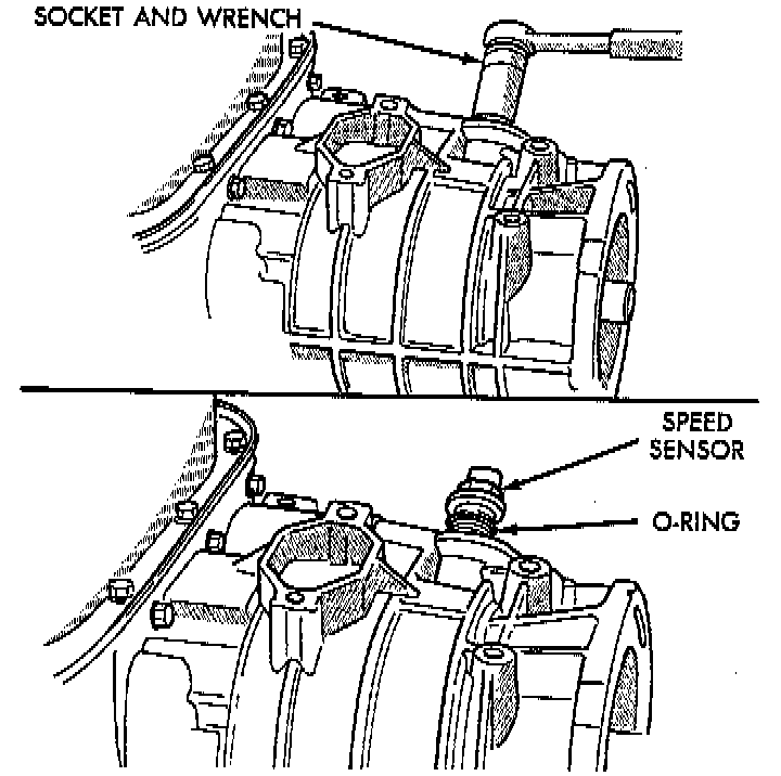 1. Remove transmission speed sensor and O-ring seal from overdrive case.