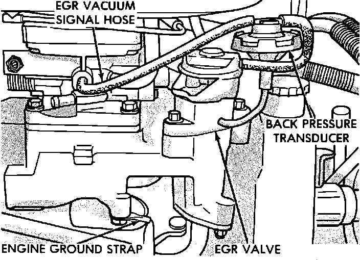 12. Check that the hose is connected at the EGR back pressure transducer, and make sure that the hose is in good condition and not leaking.