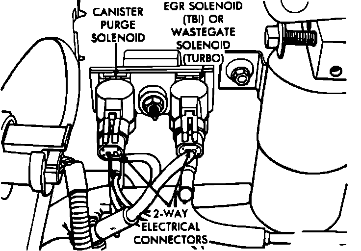 2. Check the canister purge solenoid vacuum and electrical connections.