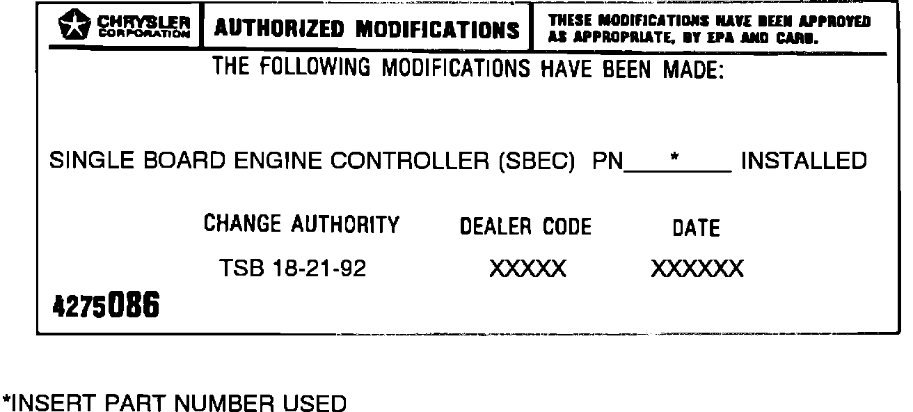 2. Remove the SBEC (Powertrain Control Module) as outlined in the appropriate service manual, and replace the SBEC (Powertrain Control Module) with unit called out in PARTS REQUIRED.