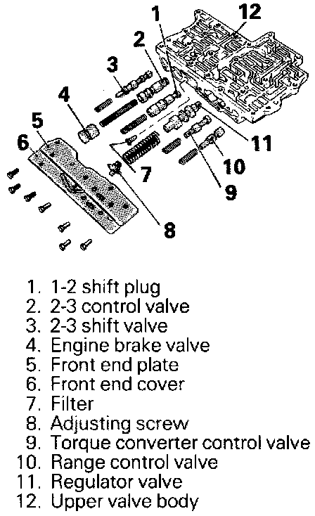 12. Remove front end cover and plate, and then remove springs, valves and filter from upper valve body.