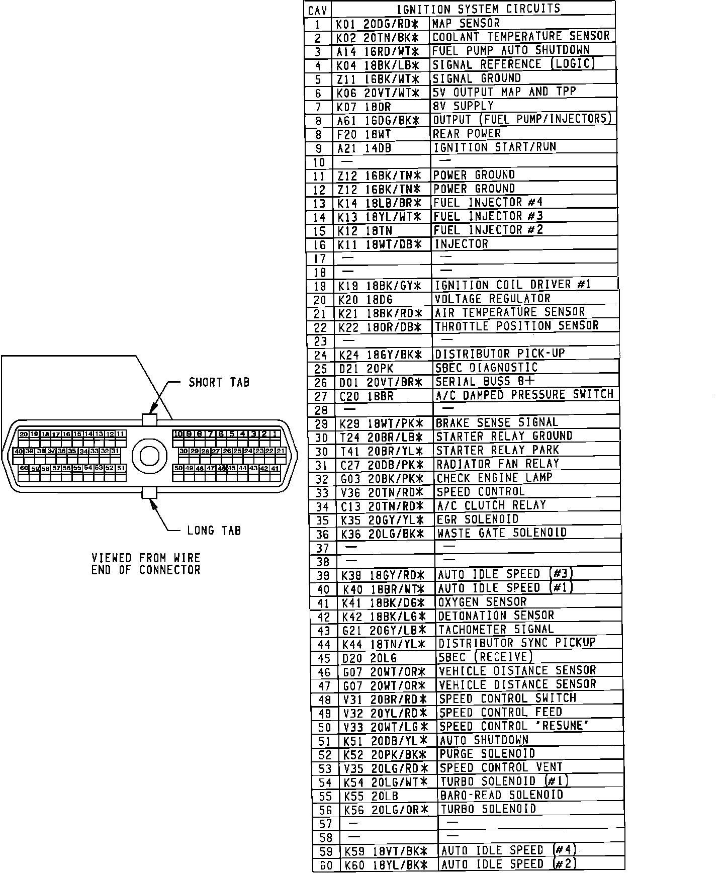 60-Way Connector Pinnout Identification: