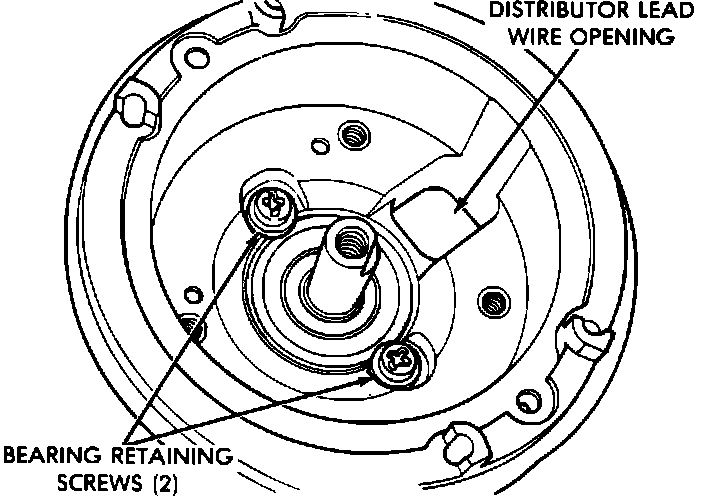 1. Remove protective cover from the distributor housing. Remove lead wire clamp screw and remove lead wire.