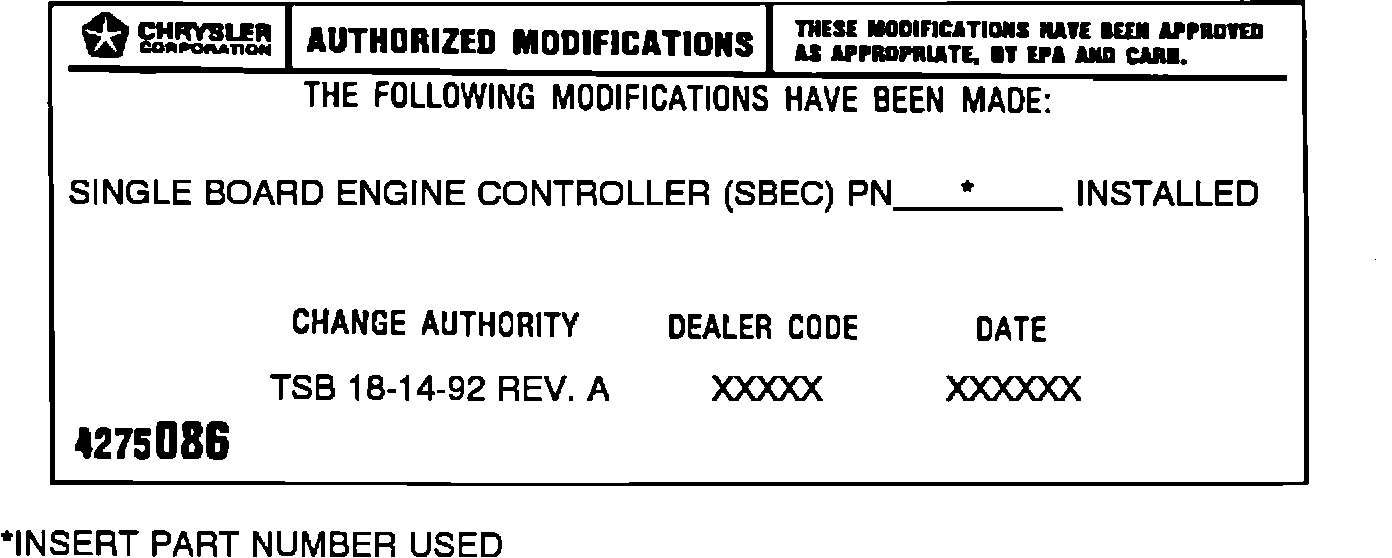 THIS BULLETIN SUPERSEDES TECHNICAL SERVICE BULLETIN 18-14-92 WHICH SHOULD BE REMOVED FROM YOUR FILES. THE SBEC (POWERTRAIN CONTROL MODULES FOR 1992 MODELS HAVE BEEN REVISED). REVISIONS ARE PRINTED AND HIGHLIGHTED WITH **ASTERISKS**.