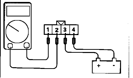 5. Apply battery voltage to the oxygen sensor. Connect the positive battery terminal to terminal # 3 of the oxygen sensor, and the negative battery terminal to terminal # 4 of the oxygen sensor.
