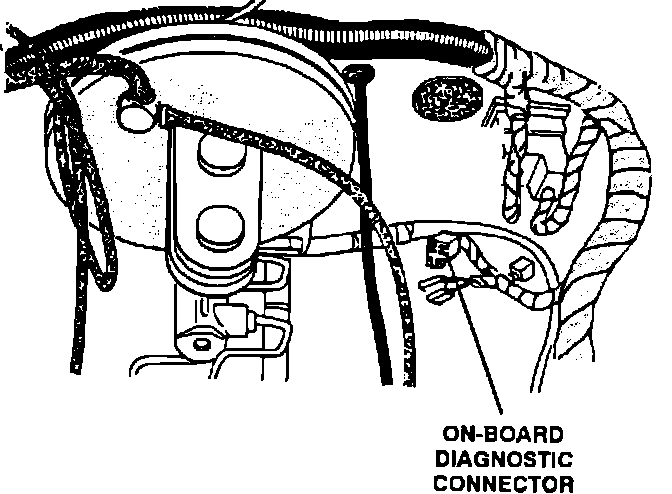 The diagnostic connector is located in the left rear corner of the engine compartment, by the brake master cylinder.