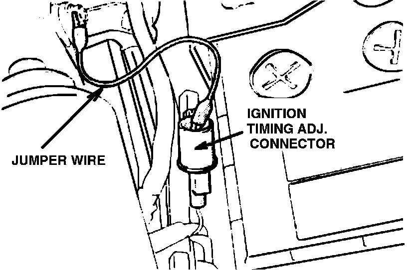 4. Using a second jumper wire, ground the Ignition Timing Adjustment Terminal, located in the engine compartment.