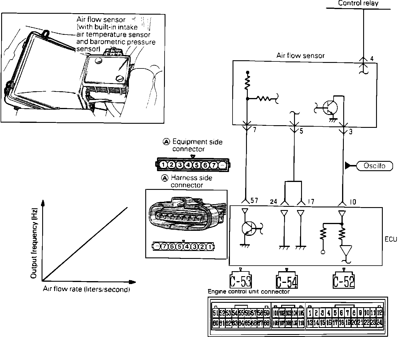 The Air Flow Sensor (AFS) measures the amount of air entering the intake manifold to provide the ECU with precise intake volume information. The AFS is a "Karman Vortex" type which measures the intake air volume.