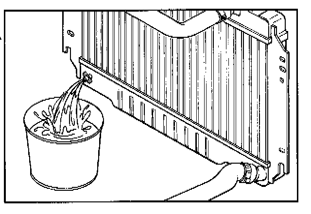 Drain the coolant system by opening the drain valve on the radiator. A drain pan with a capacity of 20 liters [5 U.S. gallons] will be adequate to hold the coolant.