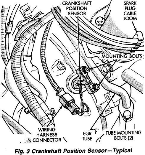 The sensor is bolted to the top of the cylinder block near the rear of right cylinder head.