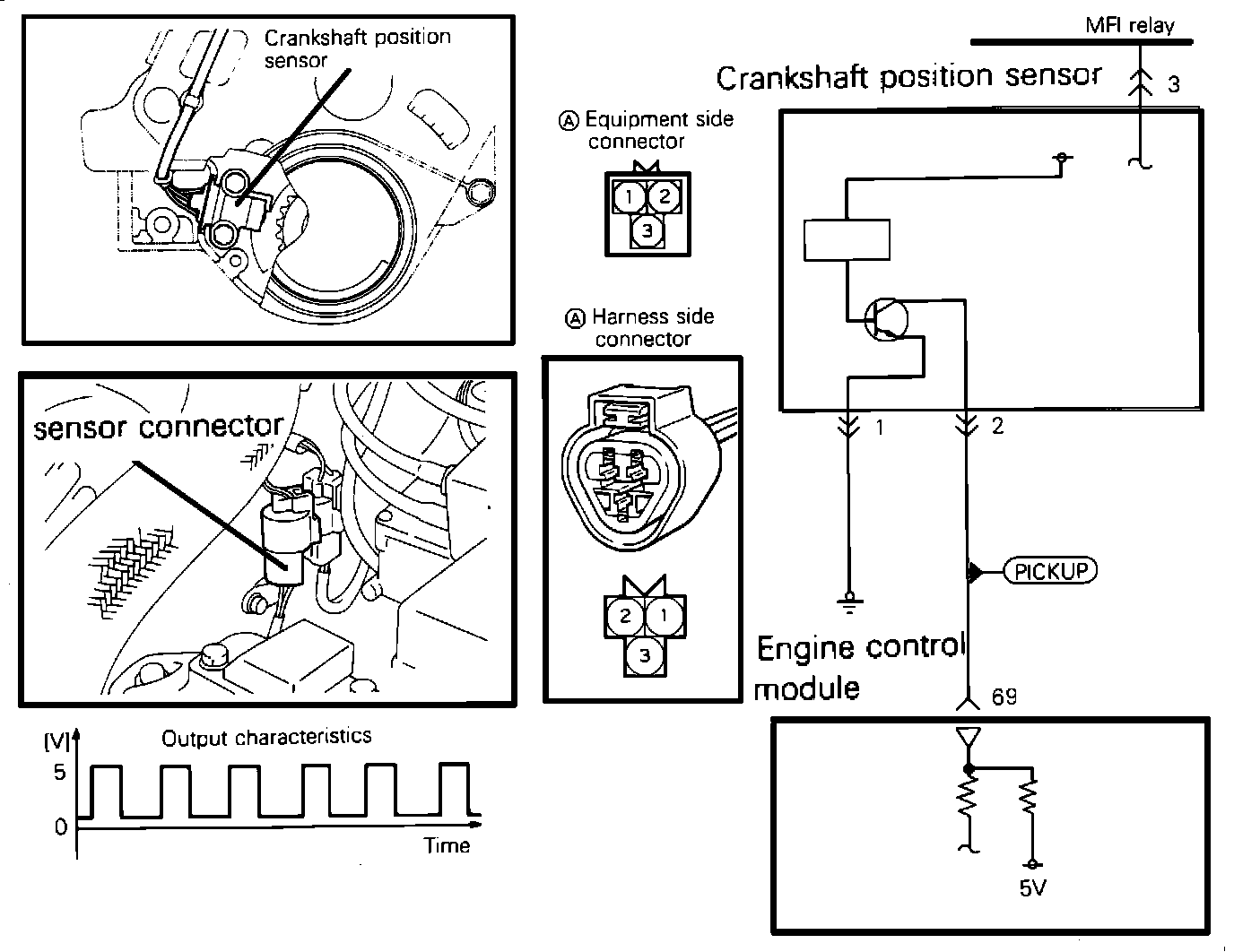1. Disconnect the crankshaft position/camshaft (TDC) sensor connector and turn the key to the ON position.