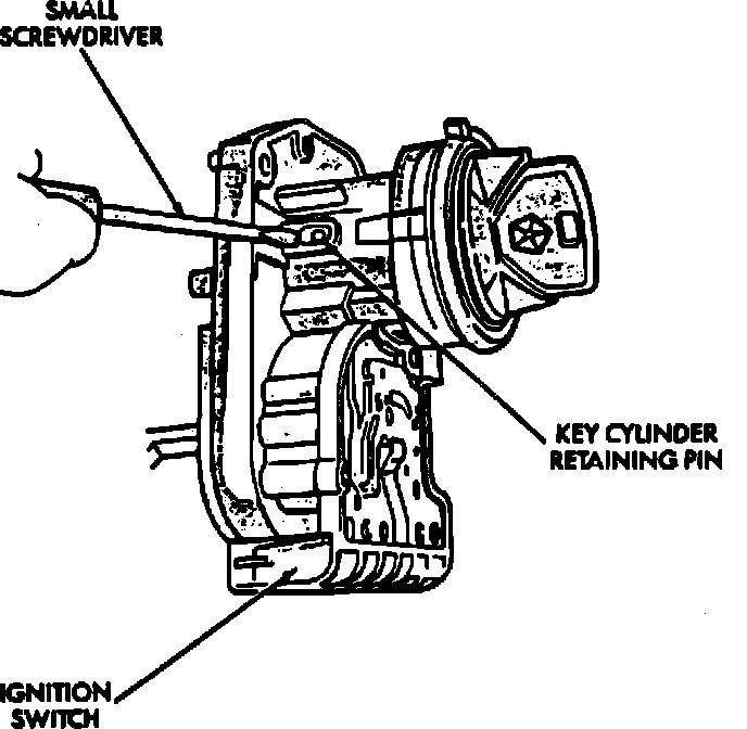6. Remove key cylinder from switch as follows: