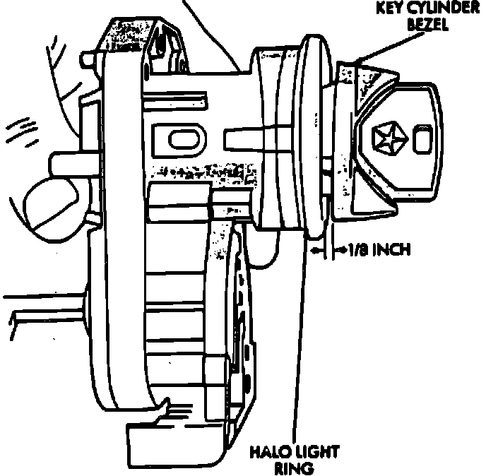 5. Remove key in switch and halo light four terminal connector from ignition switch.