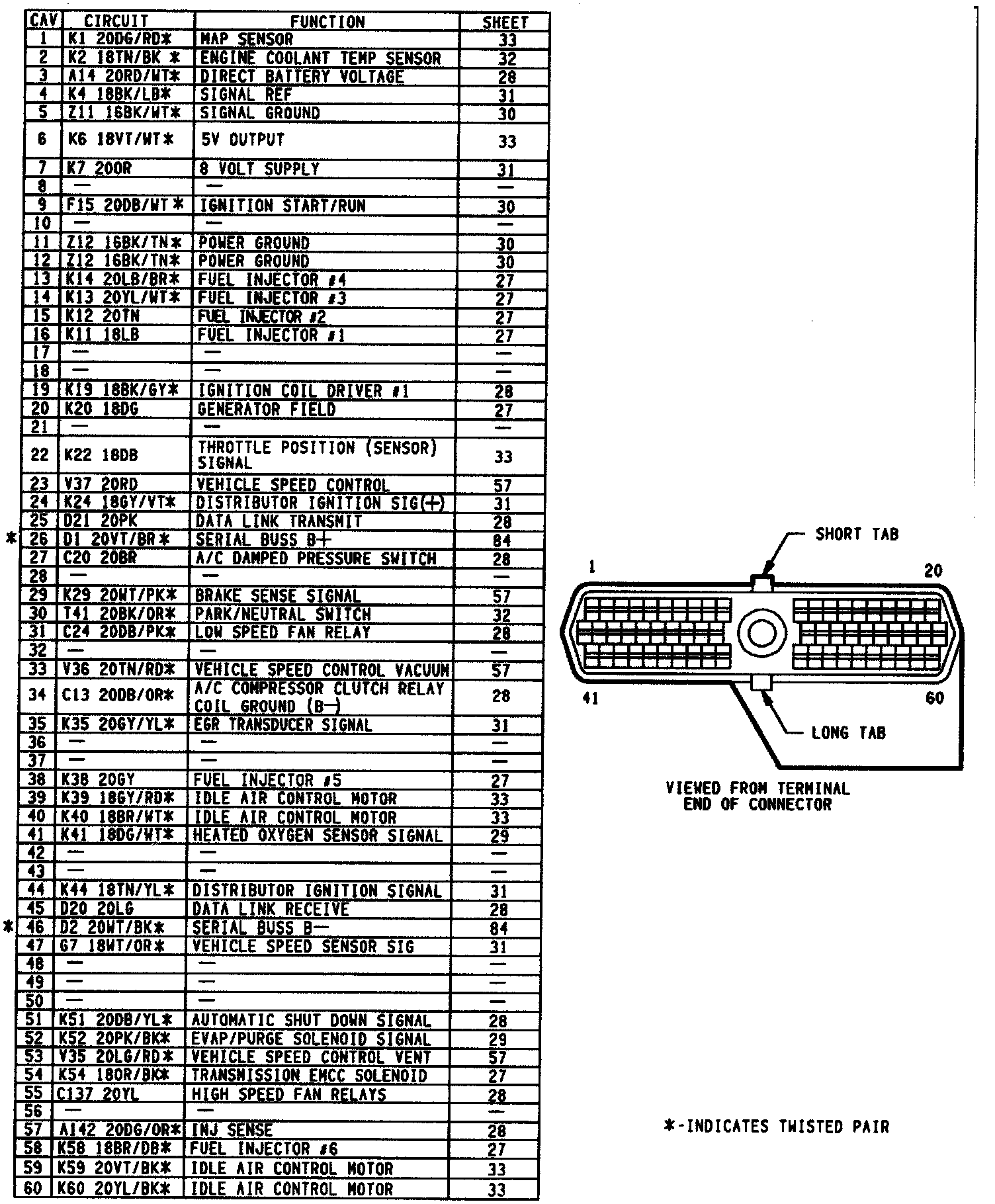 Powertrain Control Module 60 Way Connector (Engine W/O TCM):