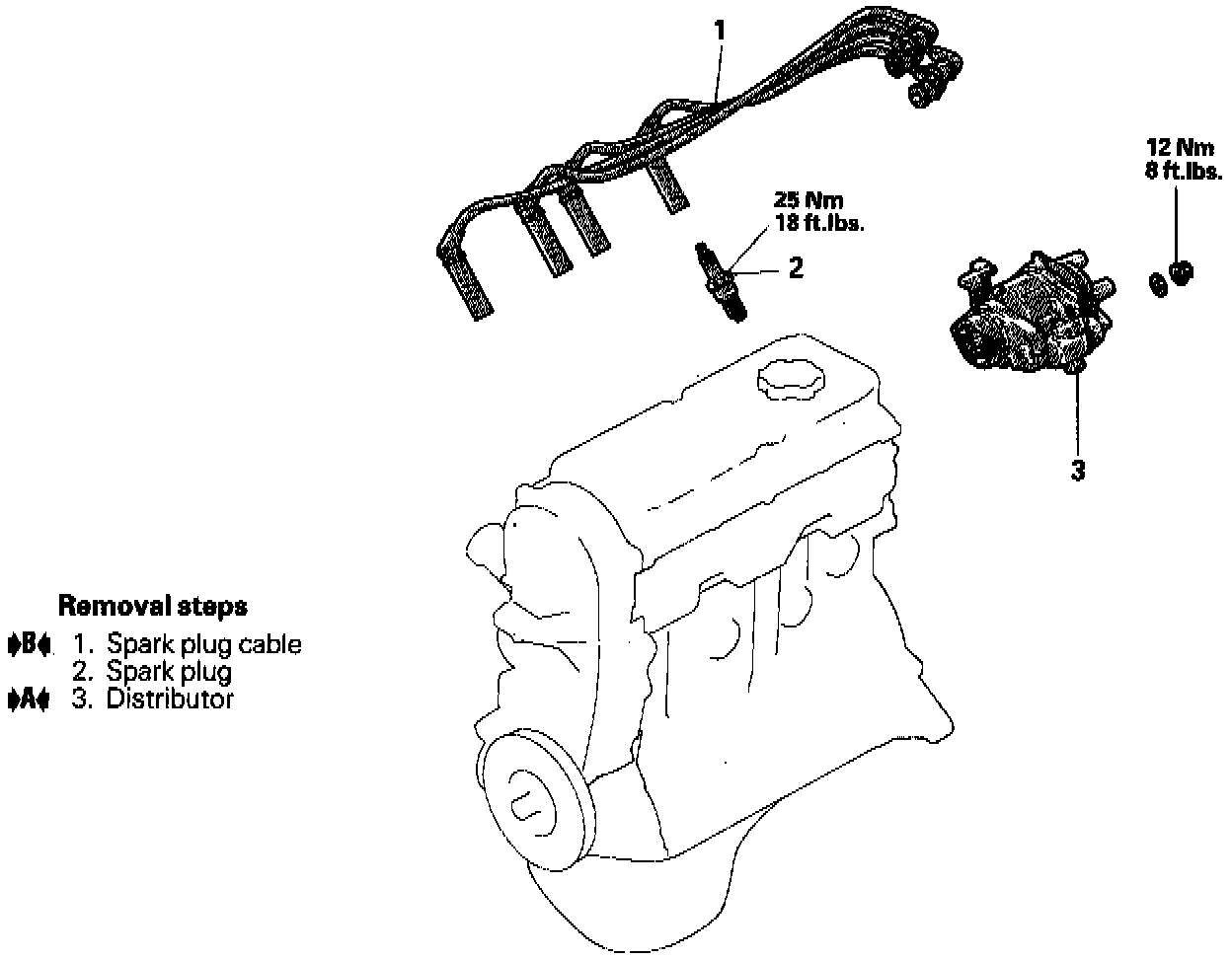 5. Remove distributor mounting nuts, then the distributor assembly from engine.