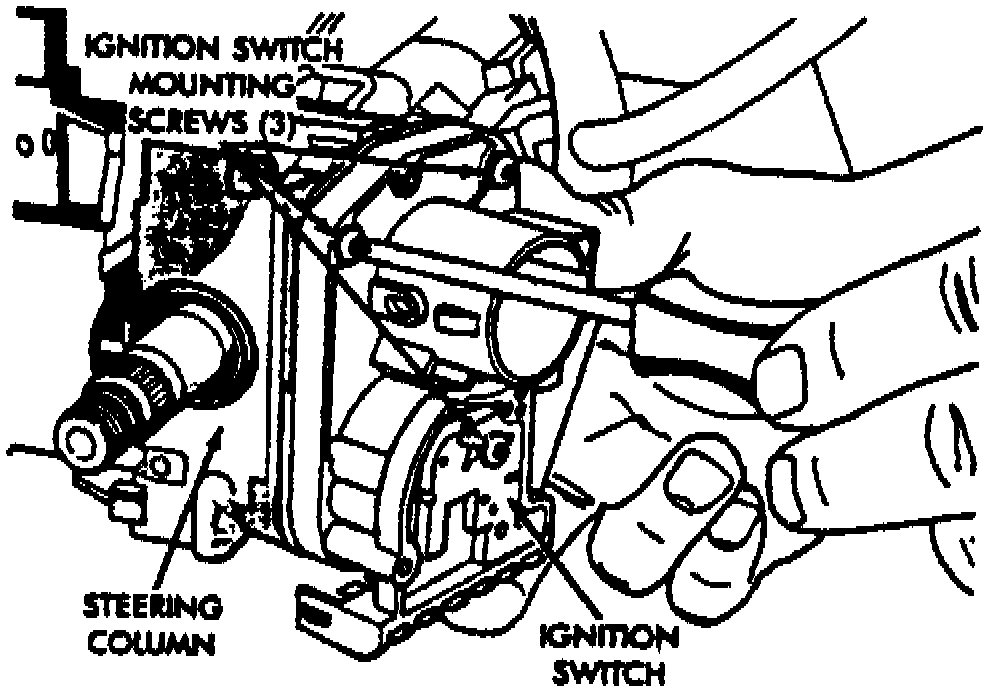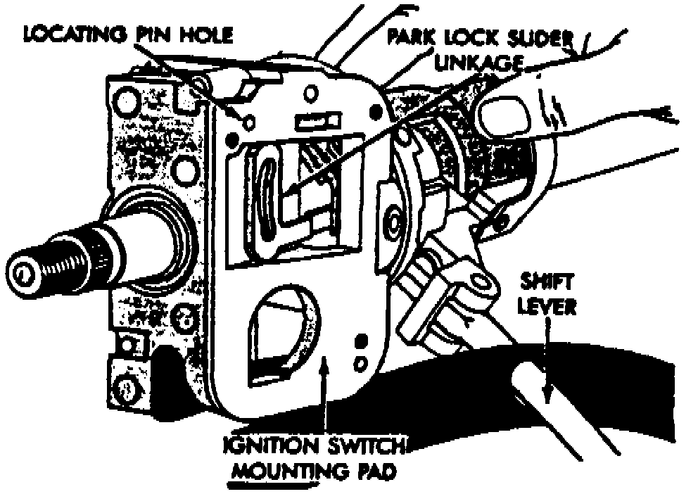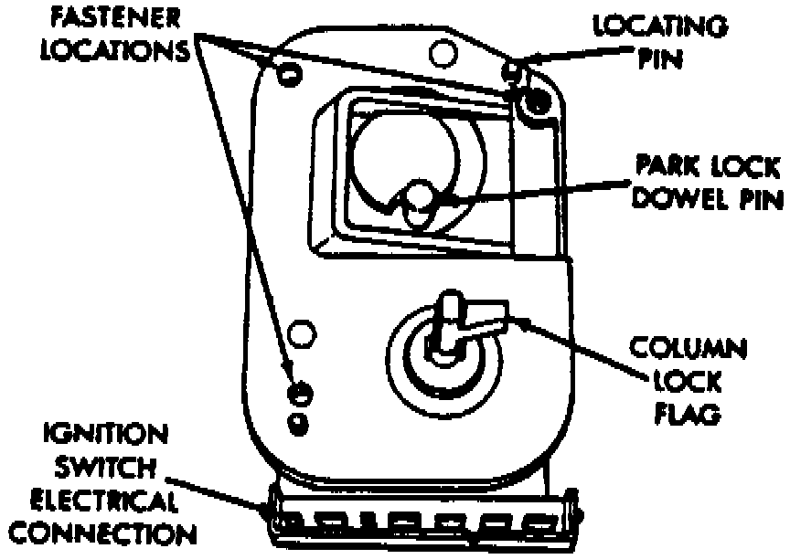 2. Mount ignition switch to column. If equipped with column shift, shifter must be in Park position and park dowel pin on ignition switch must engage with column park lock slider linkage.