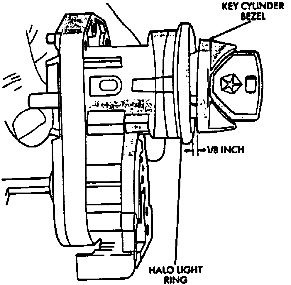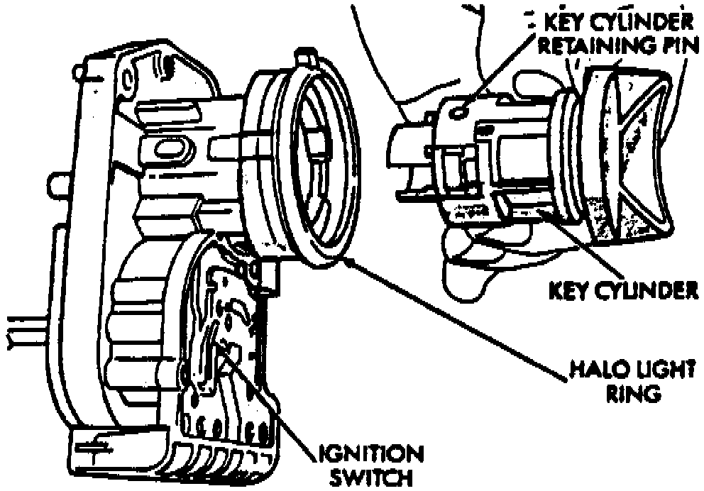 b. Rotate key clockwise to Off position and unseat key cylinder from ignition switch assembly.
