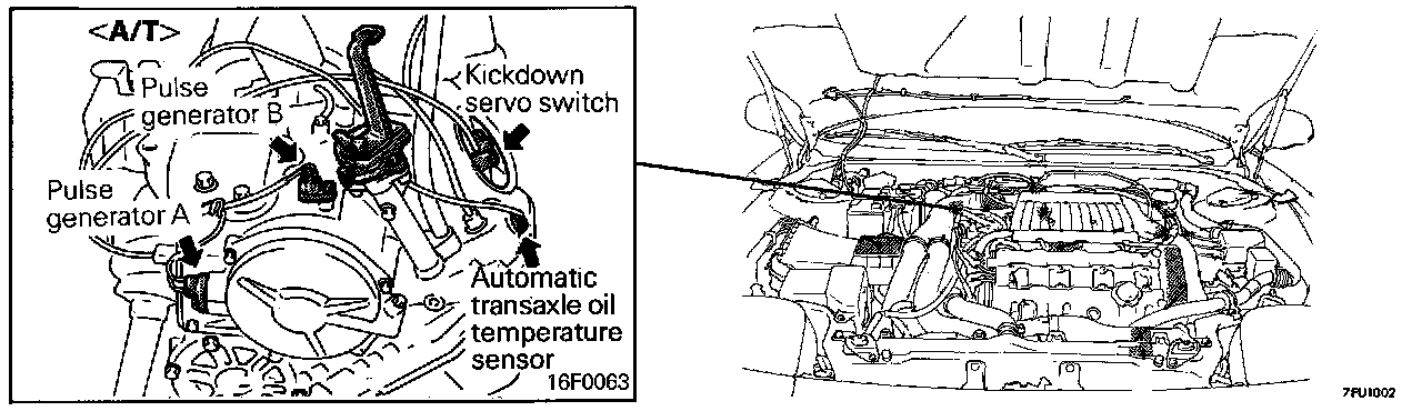 A/T Oil Temperature Sensor, Kickdown Servo Switch, Pulse Generator A & B: