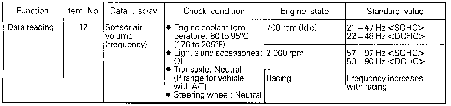 NOTE: When the vehicle is new [within initial operation of about 500 km (300 miles)], the volume air flow sensor output frequency may be about 10% higher.