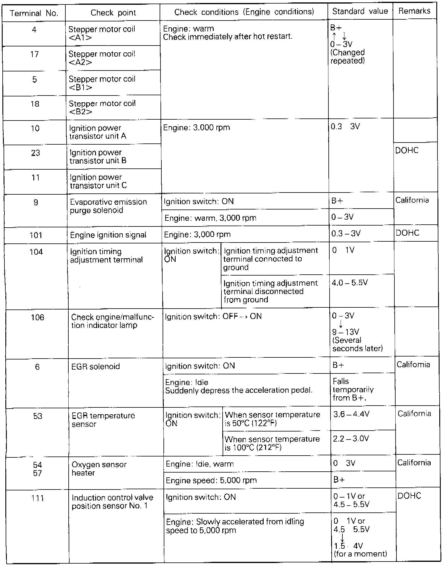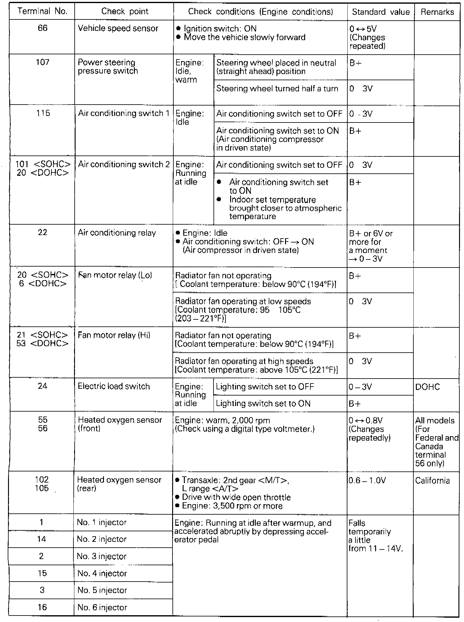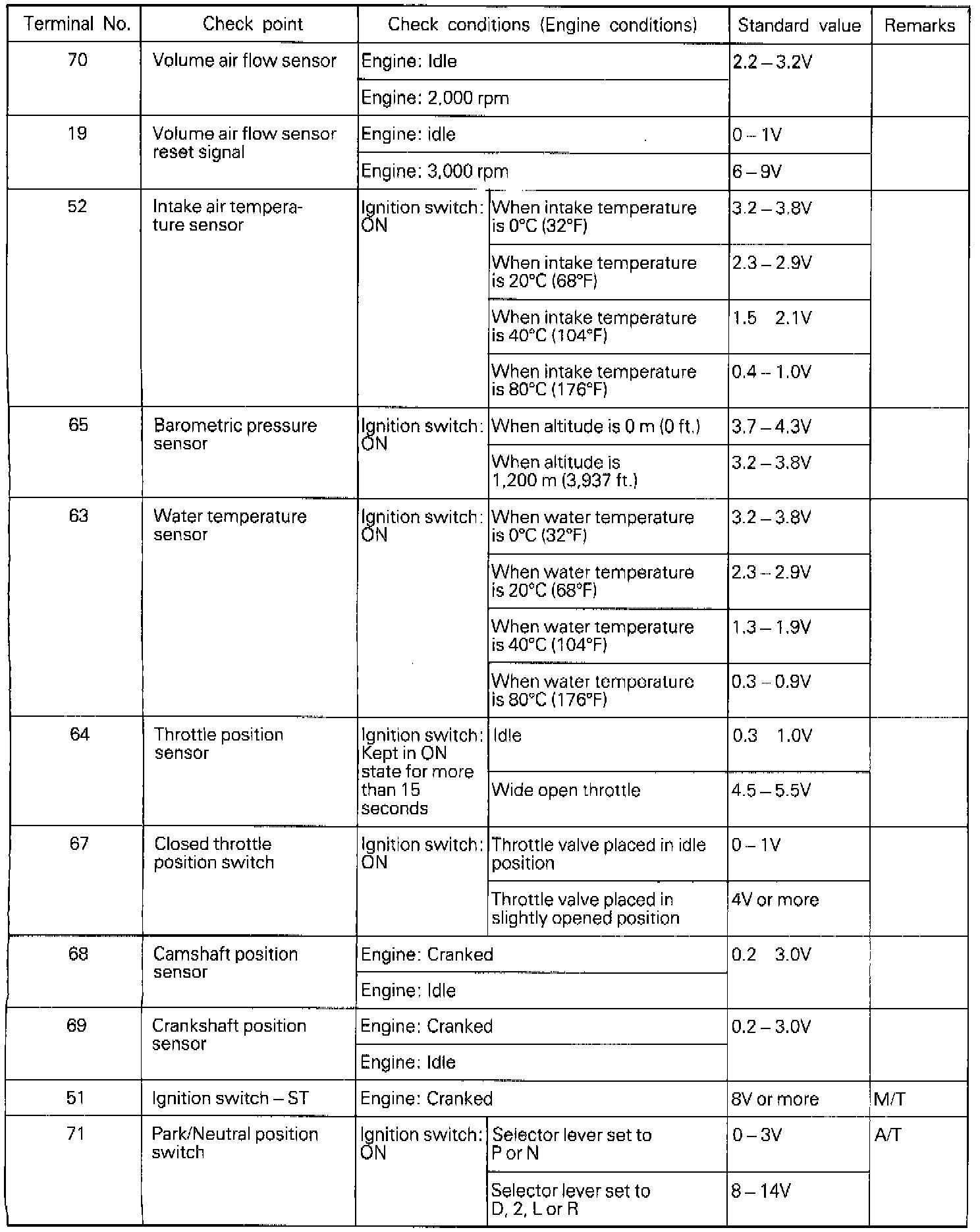 3. If the voltmeter shows any deviation from the standard value, check the corresponding sensor, actuator and related electrical wiring, then repair or replace.