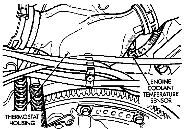 The engine coolant temperature sensor threads into the rear of intake manifold.