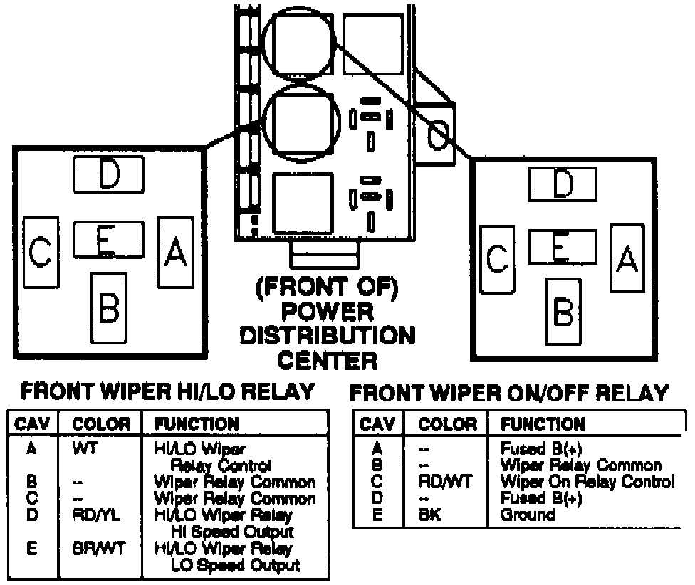 Figure 11: Front Wiper Control Relay Pin Locations: