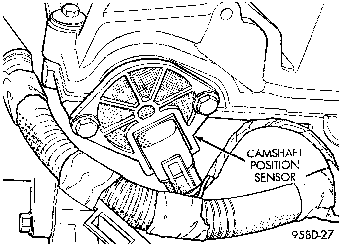 The PCM determines fuel injection synchronization and cylinder identification from inputs provided by the camshaft position sensor (Fig. 4) and crankshaft position sensor. From the two inputs, the PCM determines crankshaft position.