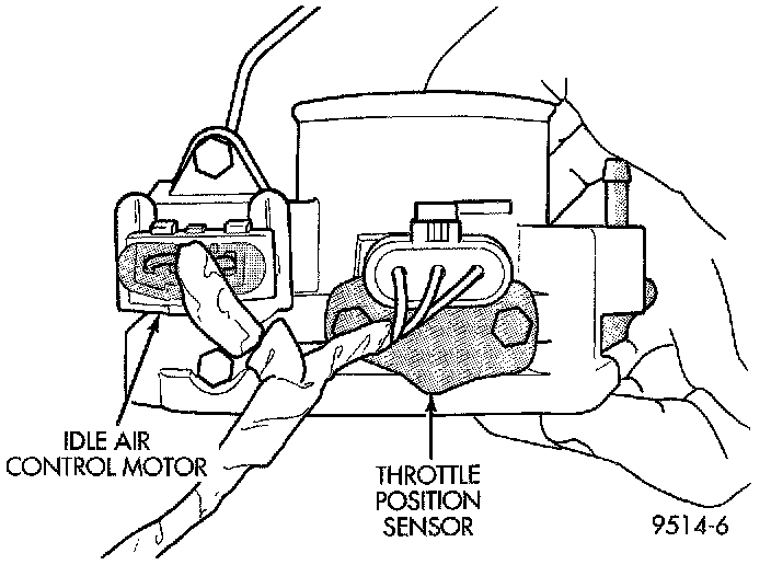 The throttle position sensor mounts to the side of the throttle body (Fig. 19).