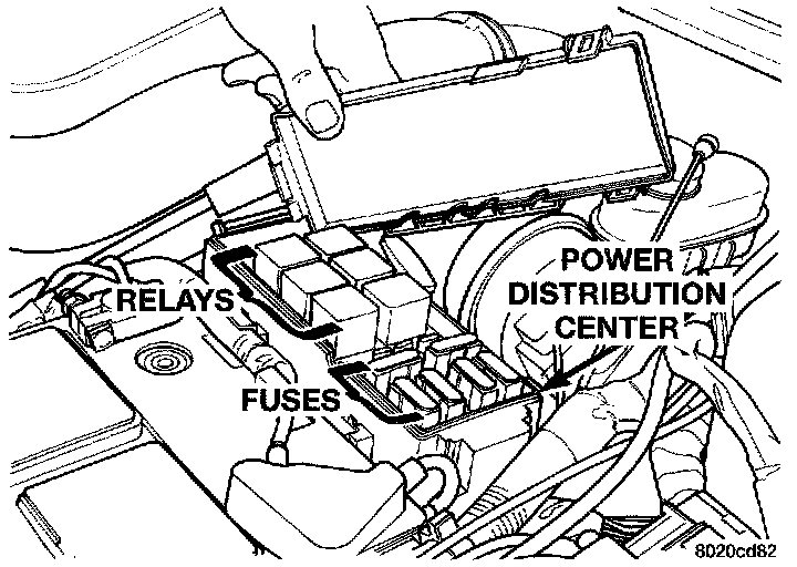 3. Open the Power Distribution Center (PDC). Check for blown fuses. Ensure the relays and fuses are fully seated in the PDC. A label on the underside of the PDC cover shows the locations of each relay and fuse.