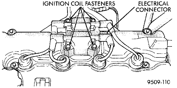 9. Inspect the ignition coil electrical connection. Ensure the spark plug insulators are firmly seated over the spark plugs.