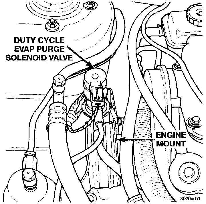 10. Inspect the electrical and hose connections at the duty cycle purge solenoid.