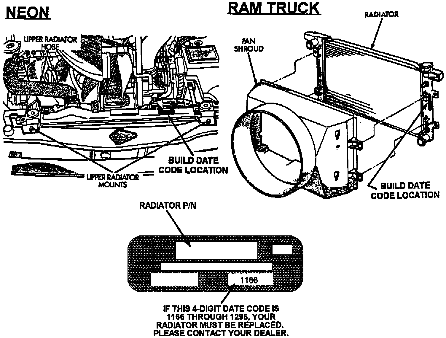 2. ^ If the build date code is 1166 through 1296, the radiator must be replaced. Contact your dealer to schedule a service appointment.