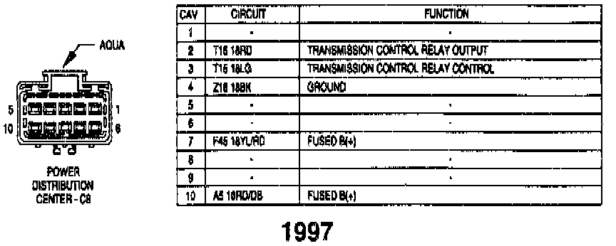 Check the ground wire from the eyelet to CAV # 4 of the aqua C8 connector on the bottom of the Power Distribution Center (PDC) for continuity.
