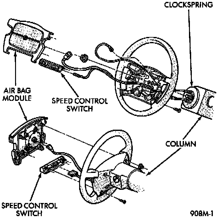 REMOVALWARNING: BEFORE ATTEMPTING TO DIAGNOSE, REMOVE OR INSTALL ANY AIRBAG SYSTEM OR RELATED STEERING WHEEL AND STEERING COLUMN COMPONENTS YOU MUST FIRST DISCONNECT AND ISOLATE THE BATTERY NEGATIVE (GROUND) CABLE. WAIT 2 MINUTES FOR SYSTEM CAPACITOR TO DISCHARGE BEFORE FURTHER SYSTEM SERVICE. FAILURE TO DO SO COULD RESULT IN ACCIDENTAL DEPLOYMENT AND POSSIBLE PERSONAL INJURY.