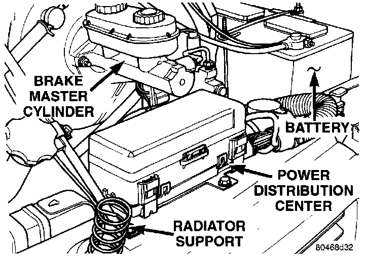 3. Refer to the label on the PDC for compressor clutch relay identification and location.