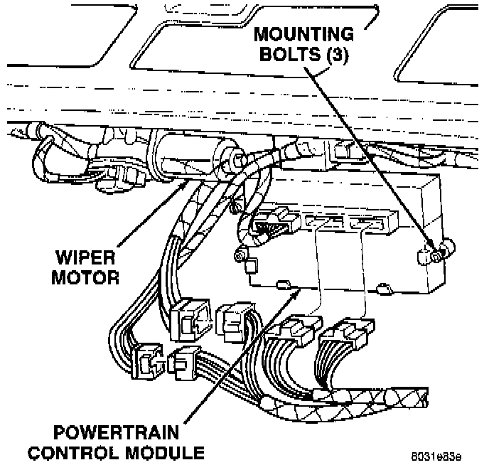 b. Remove the three Jeep/Truck Engine Controller (JTEC) mounting bolts (Fig. 53) and remove JTEC. Do not disconnect the three 32-way connectors from the JTEC.