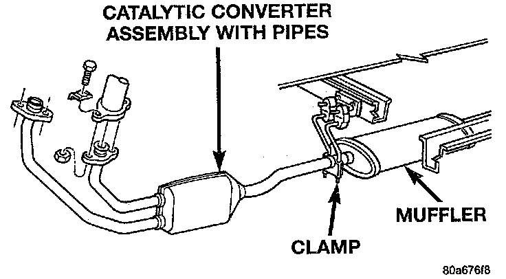 6. To disconnect the converter assembly from the muffler, other sections of the exhaust system may have to be loosened.