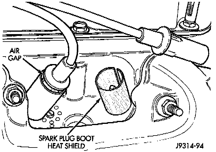 If removal of the heat shield(s) is necessary, remove the spark plug cable and compress the sides of shield for removal. Each shield is slotted to allow for compression and removal. To install the shields, align shield to machined opening in cylinder head and tap into place with a block of wood.