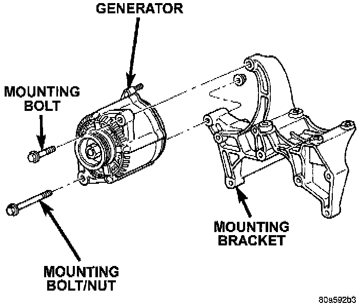 - Generator mounting bolt - 41 Nm (30 ft lb)