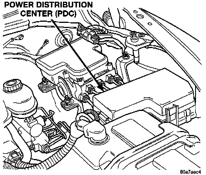 The ASD relay is located in the Power Distribution Center (PDC). The PDC is located in the engine compartment (Fig. 2). Refer to label on PDC cover for relay location.