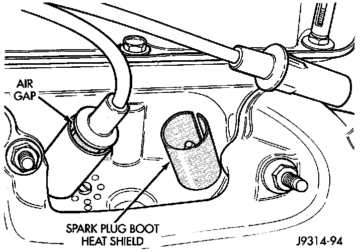 On all engines, spark plug cable heat shields are pressed into the cylinder head to surround each cable boot and spark plug. If removal of the heat shield(s) is necessary, remove the spark plug cable and compress the sides of shield for removal. Each shield is slotted to allow for compression and removal. To install the shields, align shield to machined opening in cylinder head and tap into place with a block of wood.