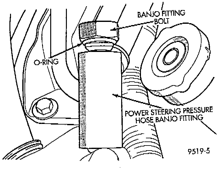 3. Install new O-ring on end of power steering pressure hose banjo fitting.