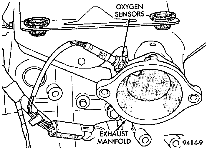 The upstream oxygen sensor threads into the outlet flange of the exhaust manifold (Fig. 11).