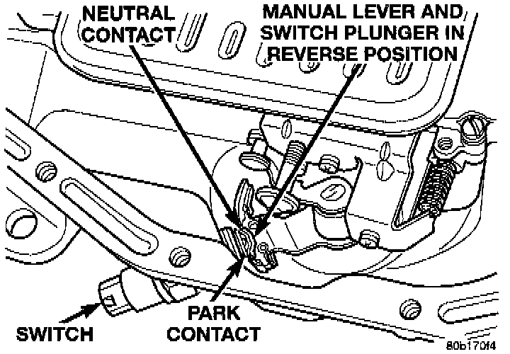 1. Move shift lever to Park and Neutral positions. Verify that switch operating lever fingers are centered in switch opening in case.