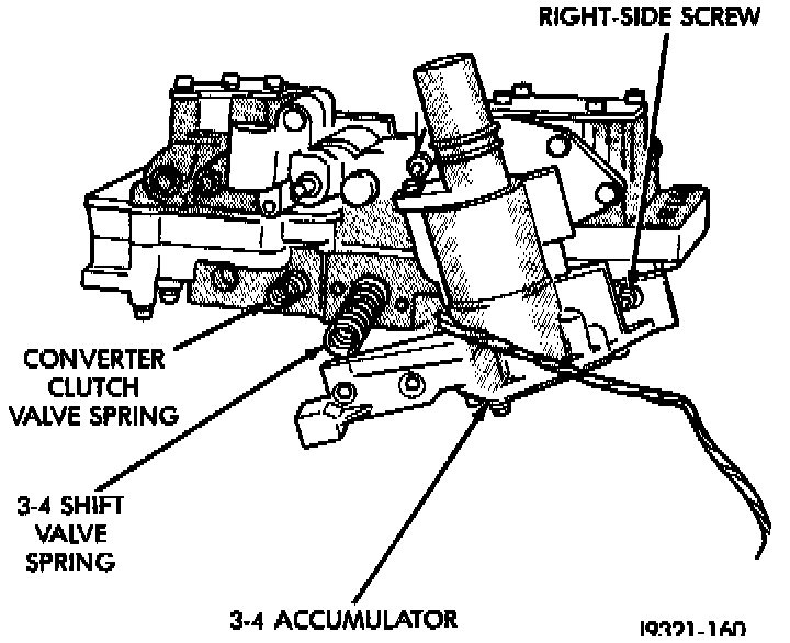 24. Loosen left-side 3-4 accumulator housing attaching screw about 2-3 threads. Then remove center and right-side housing attaching screws.