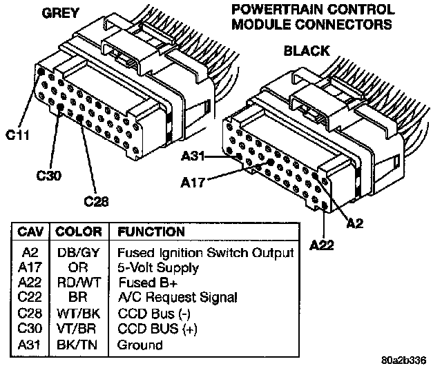 Powertrain Control Module Connectors (with CCD Bus Detail):