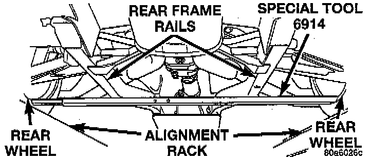 5. Position the Rear Height Checking Fixture, Special Tool 6914, or equivalent on the inner flanges of the rear rims.